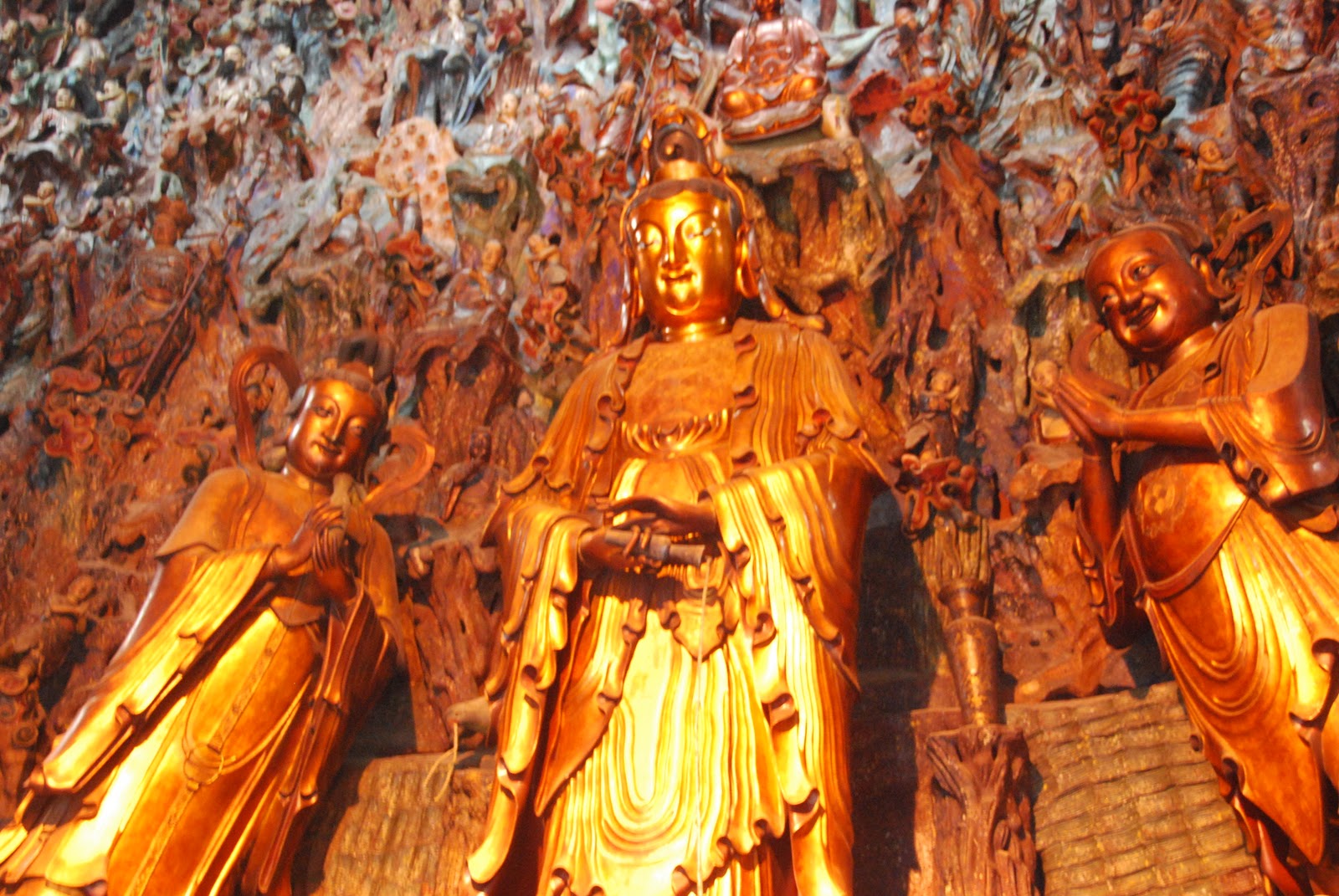 China es oficialmente un país laico, aun así existen según las estadísticas más de cien millones de creyentes. El culto a los antepasados y a las fuerzas de la naturaleza a las que creían dotadas de espíritus propios, impregnan las dos filosofías o religiones más importantes del país, el confucionismo y el taoísmo, aunque ésta en menor grado. A pesar de ello, la religión que cuenta con más seguidores es el budismo y aunque tiene su origen en la India, pocos años después de la muerte de Buda ya empezó a conocerse en China donde se fue expandiendo lentamente debido a las escasas comunicaciones a través del Himalaya o por el tampoco fácil camino de la Ruta de la Seda.
